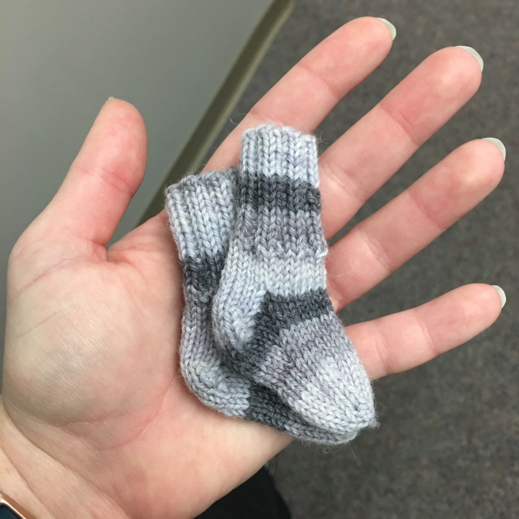 My mother is a Registered Nurse who works in a local Neonatal ICU as one of their Head Nurses. It is a very busy unit, one of the busiest in the hospital, and requires specialized care be given to the patients. About a year ago, she asked if I could make socks for the micro-preemie babies in the unit and I thought to myself, “Why not?” After all, you’re not really a knitter until you’ve knit a sock. 😛