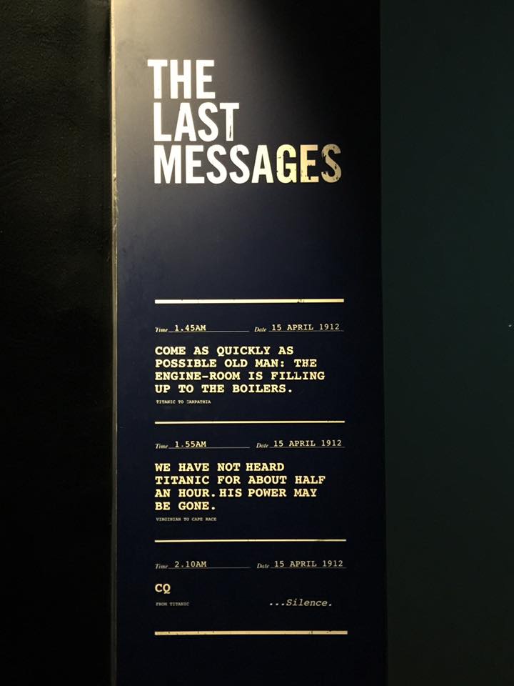The now standard S.O.S. signal was not yet widely used when the Titanic launched. Instead C.Q.D. was used, which meant “All stations: distress”… I was almost brought to tears reading the last message the Titanic ever sent.