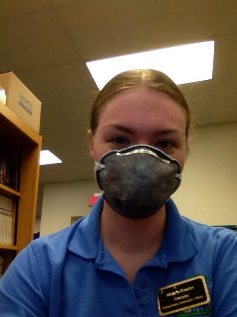 On the other side of #librarylife We are using painters masks to deal with the tar fumes from the re-roofing project.